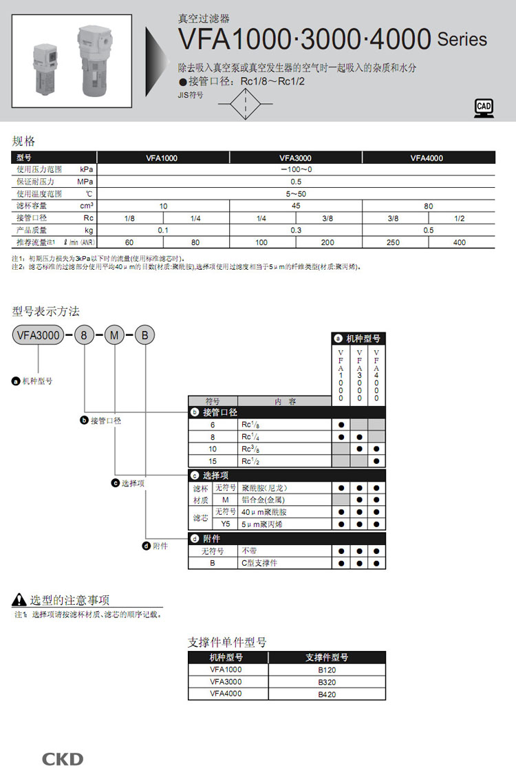 VFA1000-6,VFA1000-8,VFA3000-8,VFA3000-10,VFA4000-10,VFA4000-15,CKD真空過濾器 |