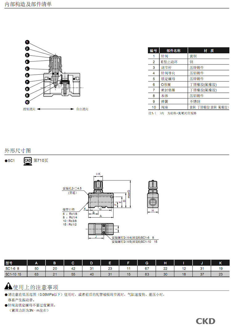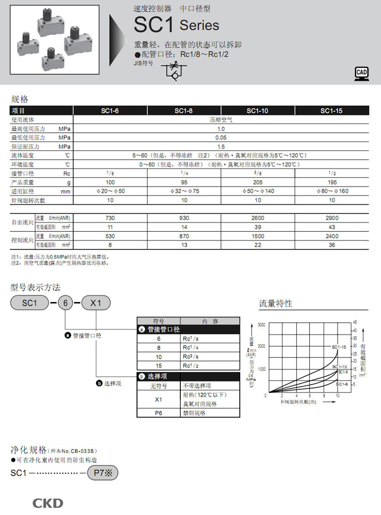 SC1-6,SC1-8,SC1-10,SC1-15,CKD速度控制器