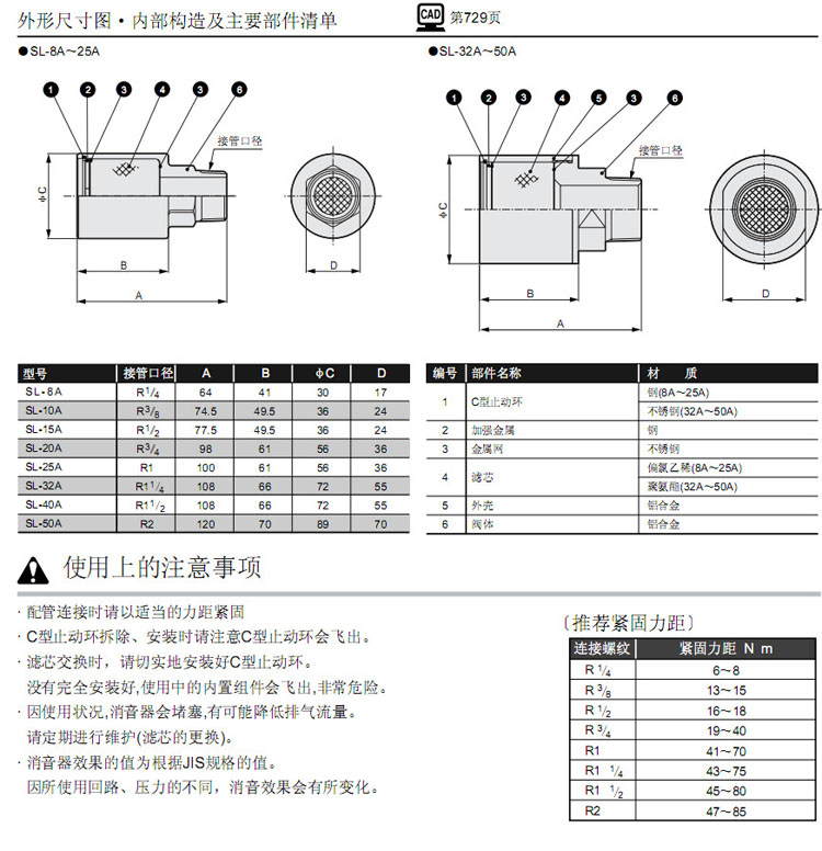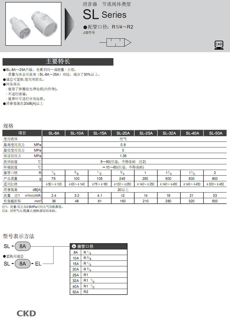 SL-8A,SL-10A,SL-15A,SL-20A,SL-25A,SL-32A,SL-40A,SL-50A,CKD消音器 |