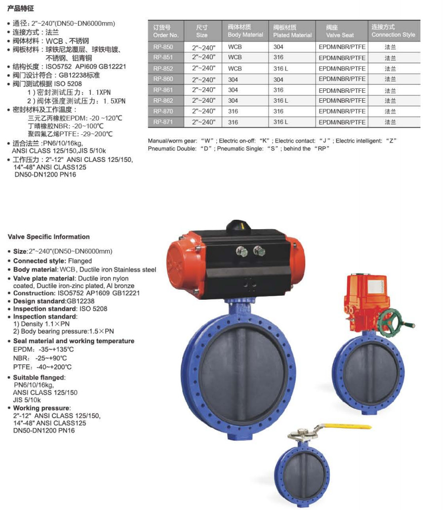 RP-850,RP-851,RP-860,RP-861,RP-862,RP-870,RP-871,中線法蘭蝶閥