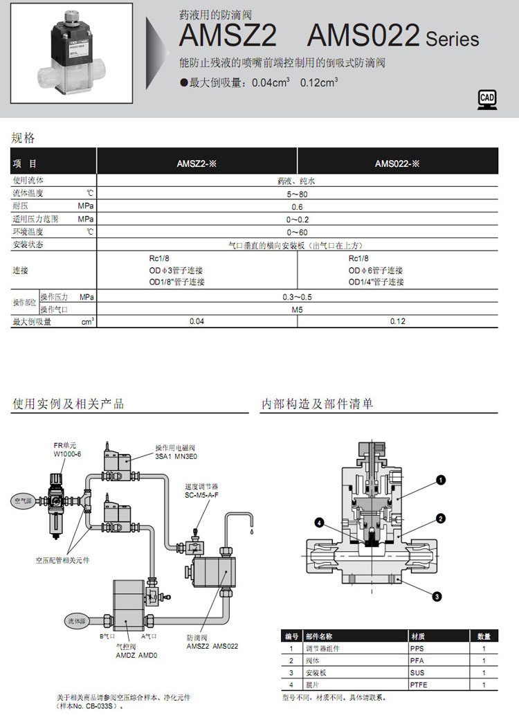 AMSZ2-6,AMS022-6,AMSZ2-3US,AMS022-6US,AMSZ2-6BUS,AMSZ2-3UF,AMS022-8BUS,AMSZ2-3UR,CKD藥液用防滴閥