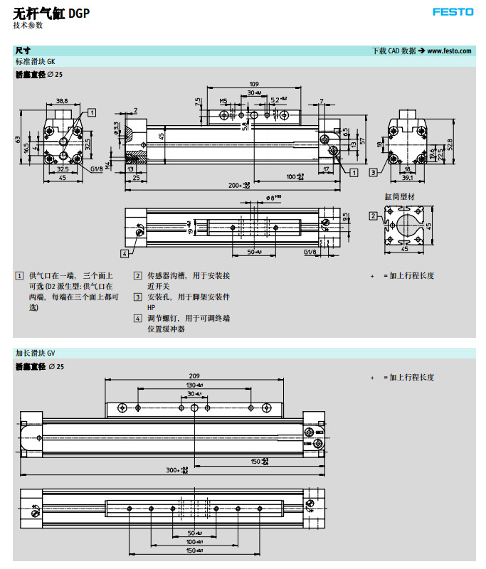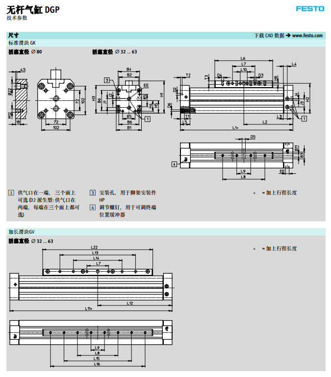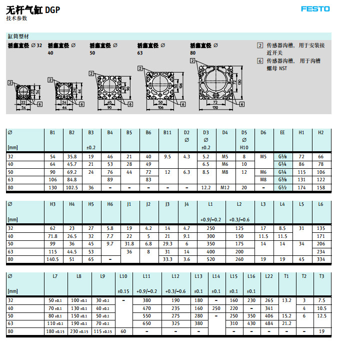 DGP-18,DGP-25,DGP-32,DGP-40,DGP-50,DGP-63,DGP-80,festo無(wú)桿氣缸