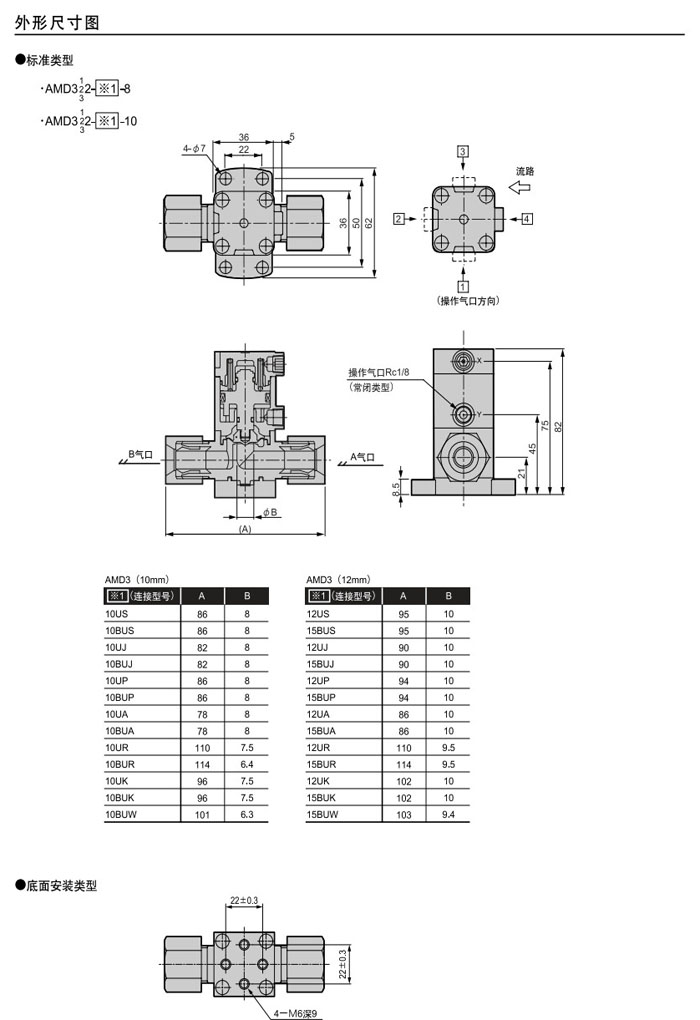 AMD312-10US-8,AMD322-10US-8,AMD332-10US-8,AMD312-12US-10,AMD322-12US-10,AMD332-12US-10,CKD藥液用氣動(dòng)閥