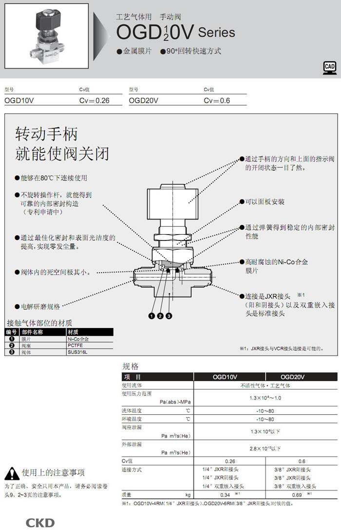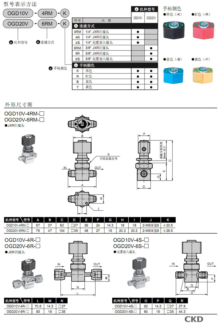 OGD10V-4RM,OGD10V-4R,OGD10V-4RS,OGD20V-6RM,OGD20V-6R,OGD20V-6RS,CKD手動閥