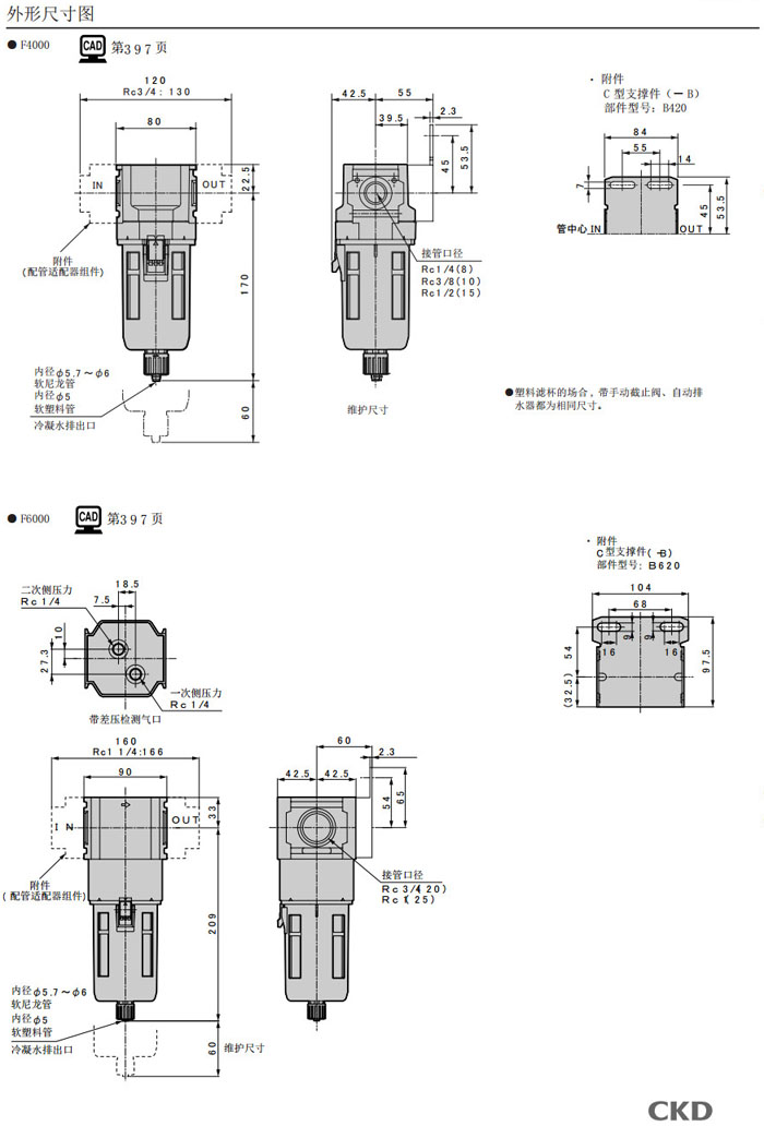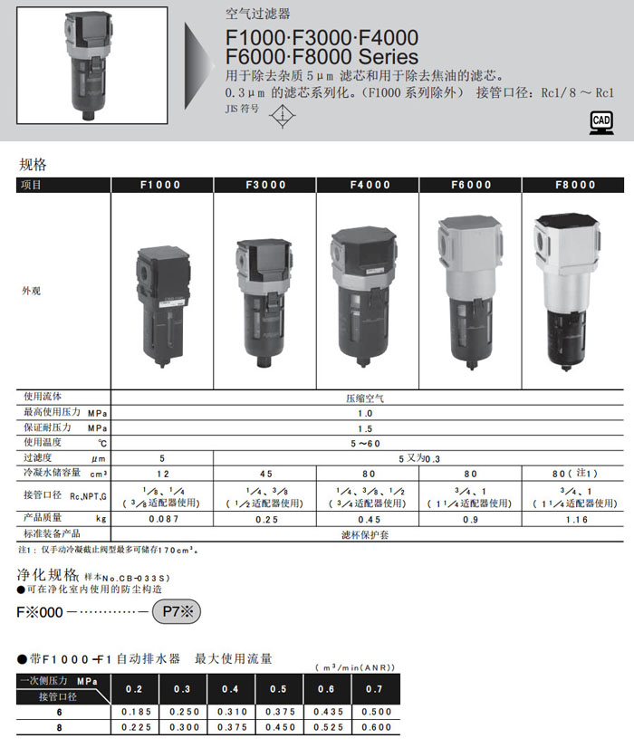 F1000-6,F1000-8,F3000-8,F3000-10,F4000-8,F4000-10,F4000-15,F6000-20,F8000-25,CKD過(guò)濾減壓閥