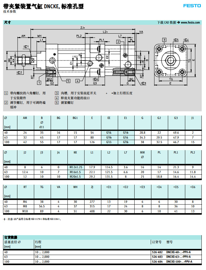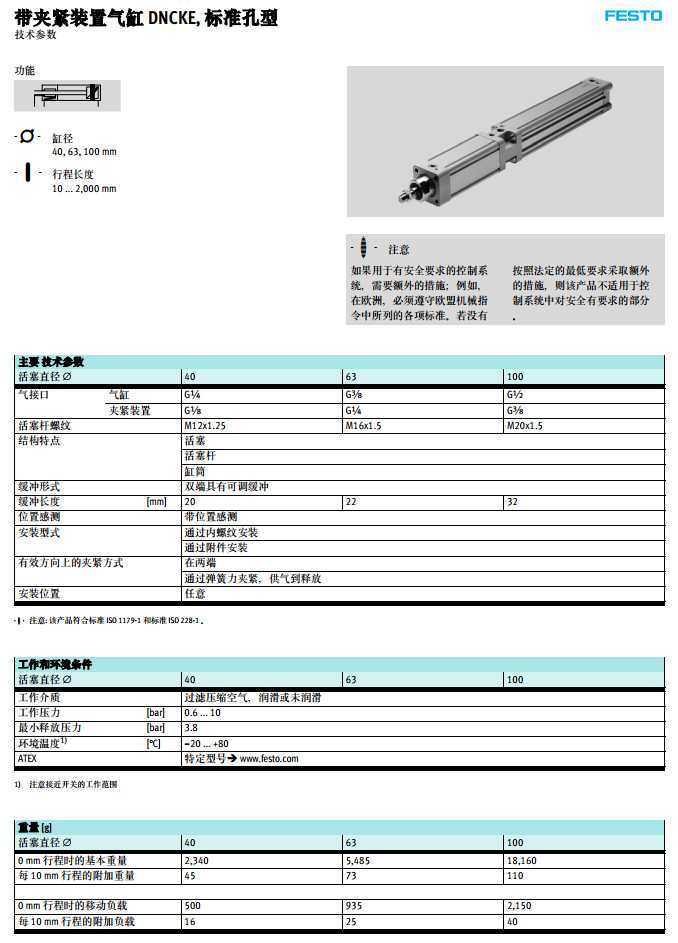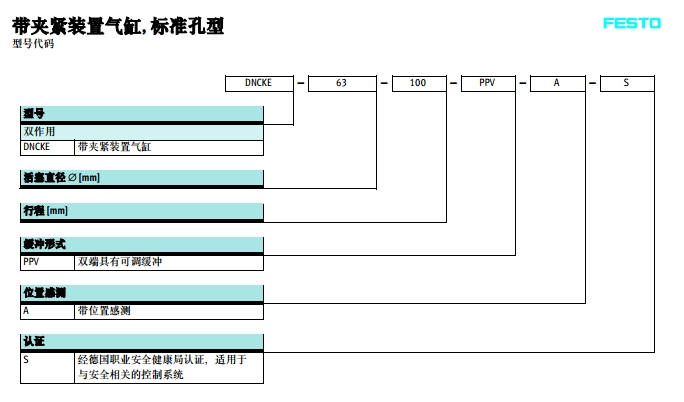 DNCKE-40-100-PPV-A-S,DNCKE-63-100-PPV-A-S,DNCKE-100-100-PPV-A-S,festo帶夾緊裝置氣缸