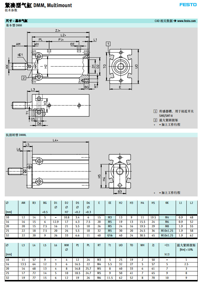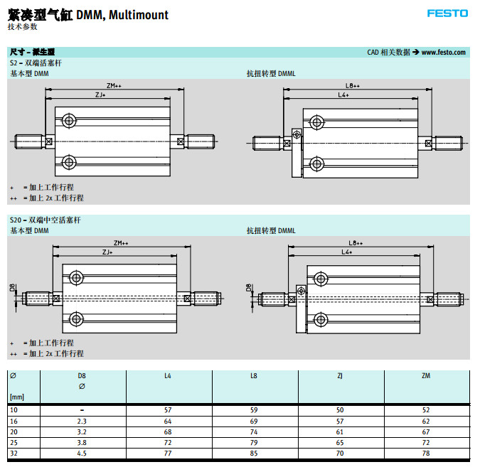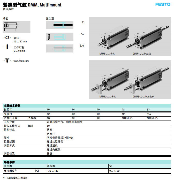 DMM-10,DMML-16,EMM-20,EMM2-25,EMML-32,EMMLZ-10,festo緊湊型氣缸