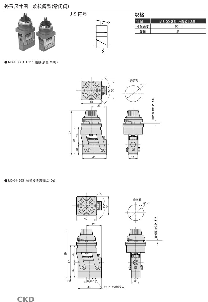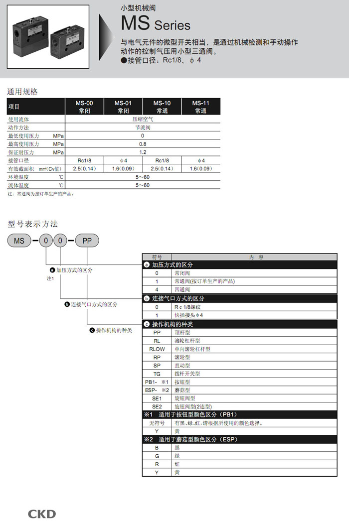 MS-00,MS-01,MS-10,MS-11,MS-40,MS-41,MS-00-PP,MS-01-PP,MS-10-PP,MS-40-SE2,CKD機(jī)械閥