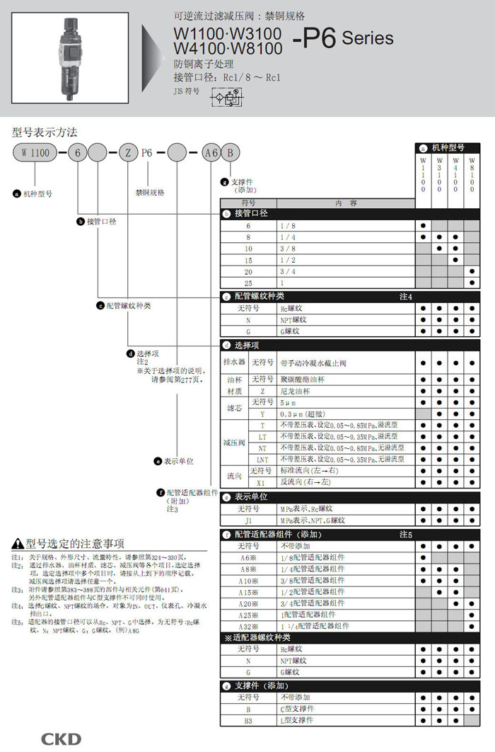 W1100-6,W1100-8,W3100-8,W3100-10,W4100-8,W4100-10,W4100-15,W8100-20,W8100-25,CKD過濾減壓閥