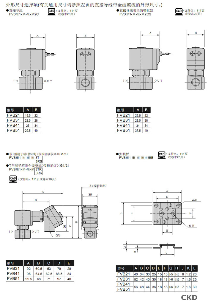 FVB21-6-Z-B2CR,FVB31-6-3-B2CR,FVB41-8-5-B2CR,FVB51-8-5-B2CR,FVB51-8-6-B2CR,CKD直動(dòng)式2通電磁閥