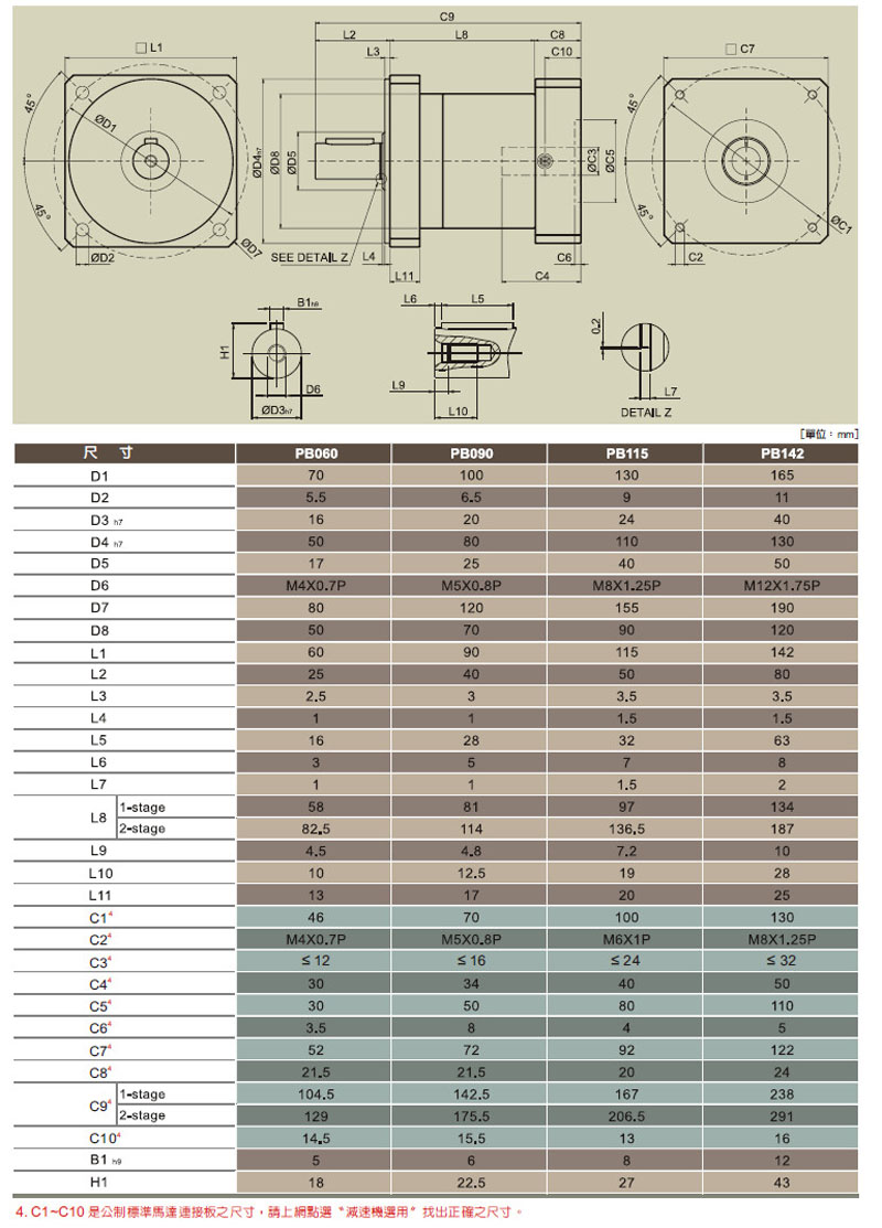 PB060-03,PB090-04,PB115-05,PB142-07,伺服專用減速機