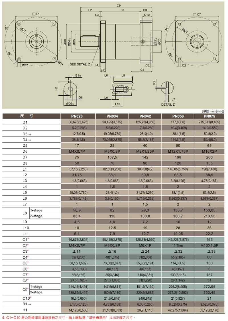 PN023-03,PN034-04,PN042-05,PN056-07,PN075-010,伺服專用減速機