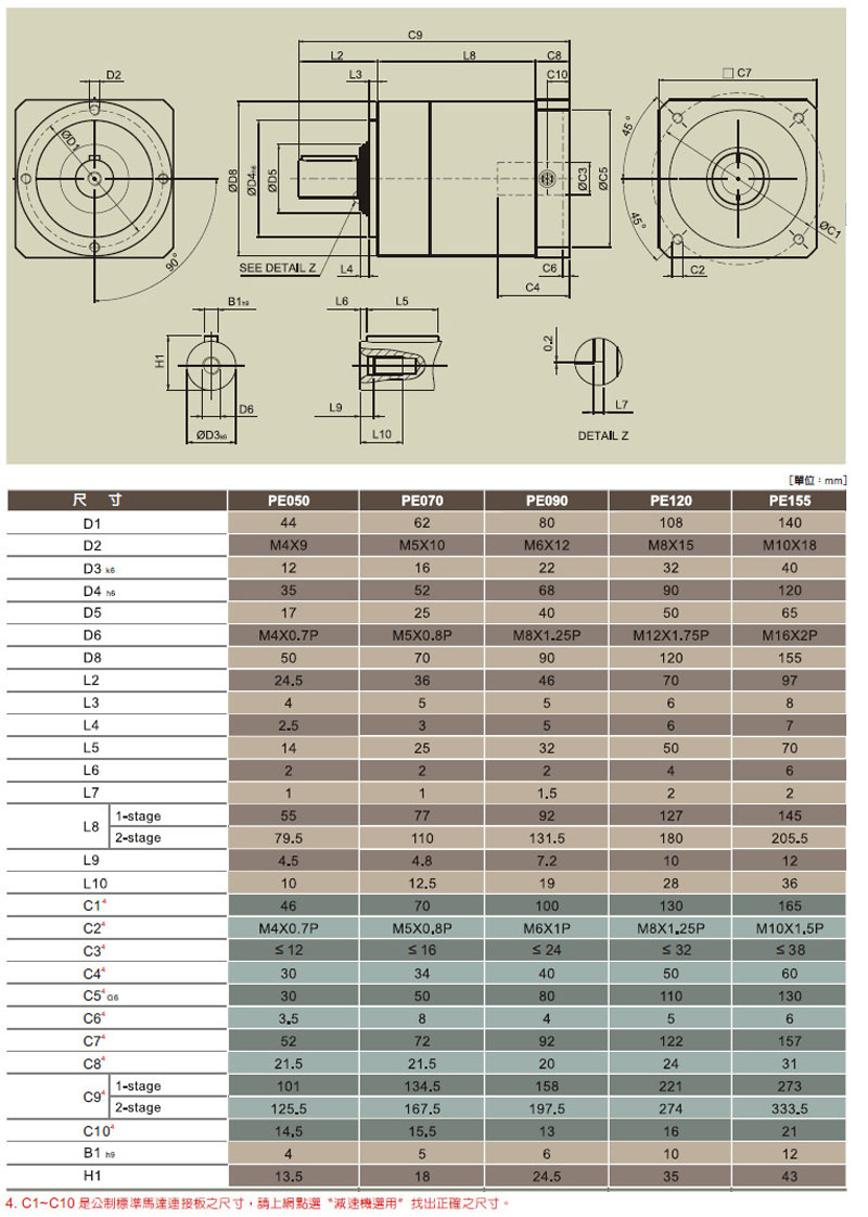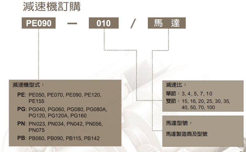 PE050-03,PE070-04,PE090-05,PE120-07,PE155-010,伺服專用減速機(jī)