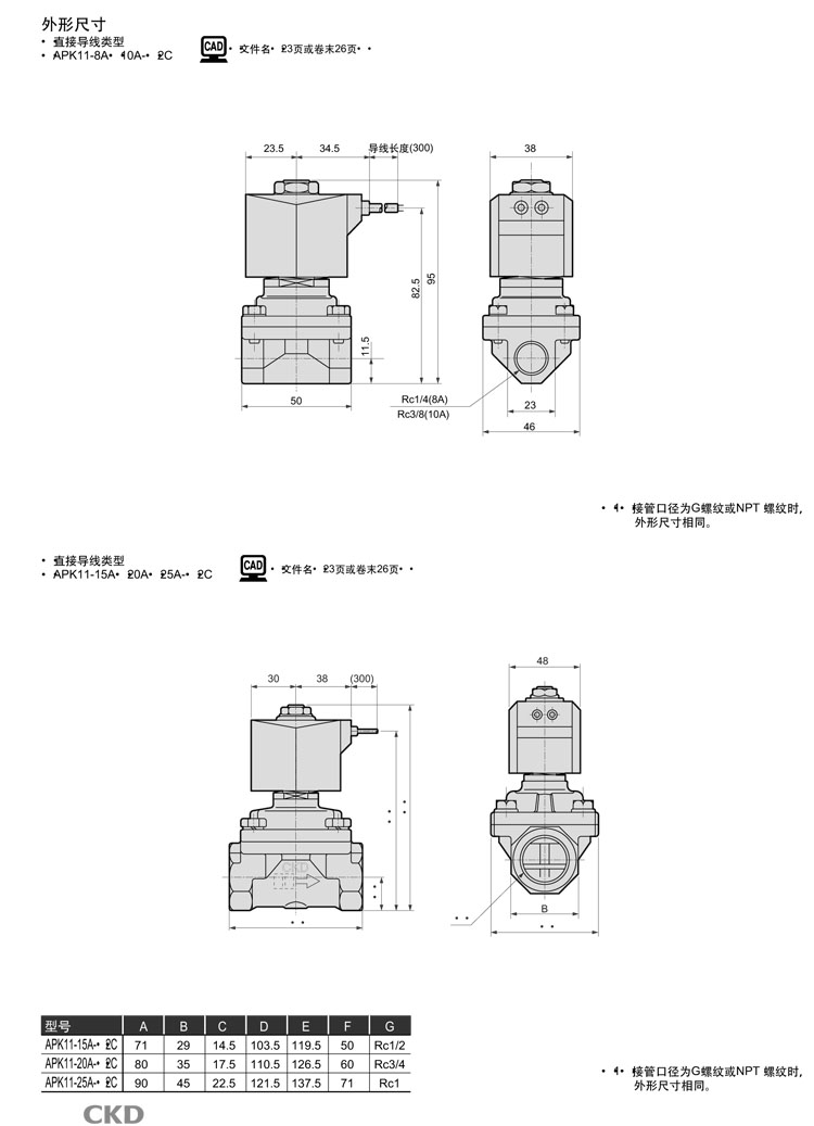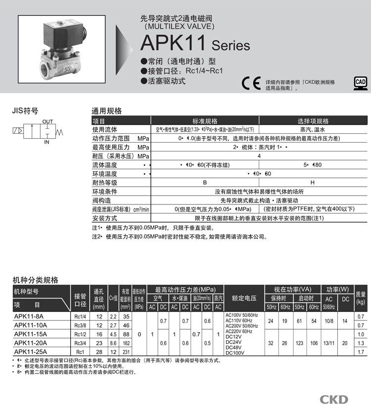 APK11-15A,APK11-15A,APK11-15A,APK11-20A,APK11-25A,CKD先導(dǎo)式2通電磁閥