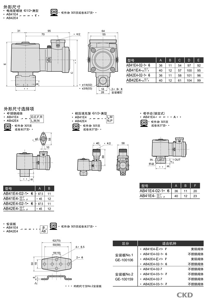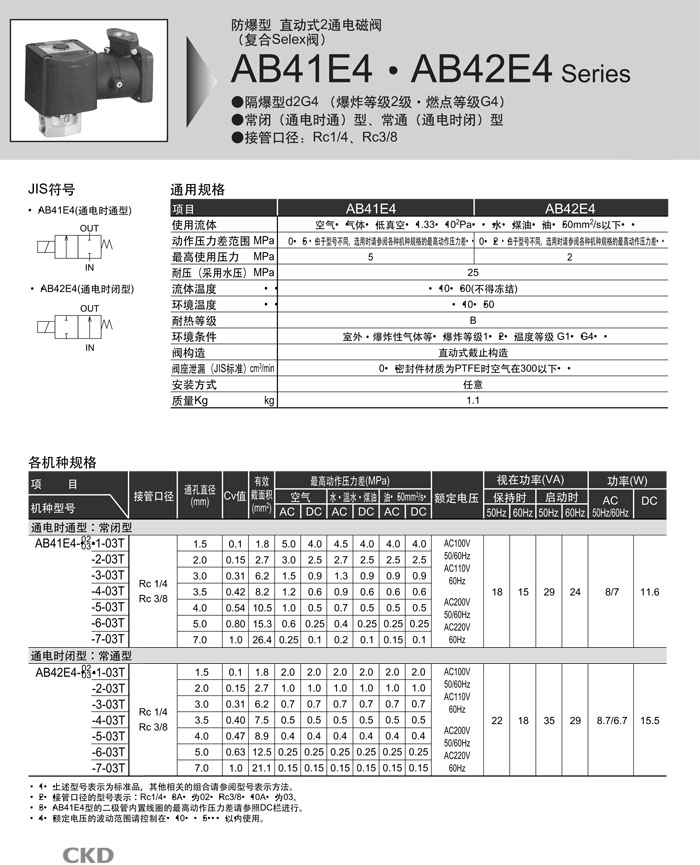 AB41E4-02-1-03T,AB41E4-03-1-03T,AB42E4-02-1-03T,AB42E4-03-1-03T,CKD直動式2通電磁閥