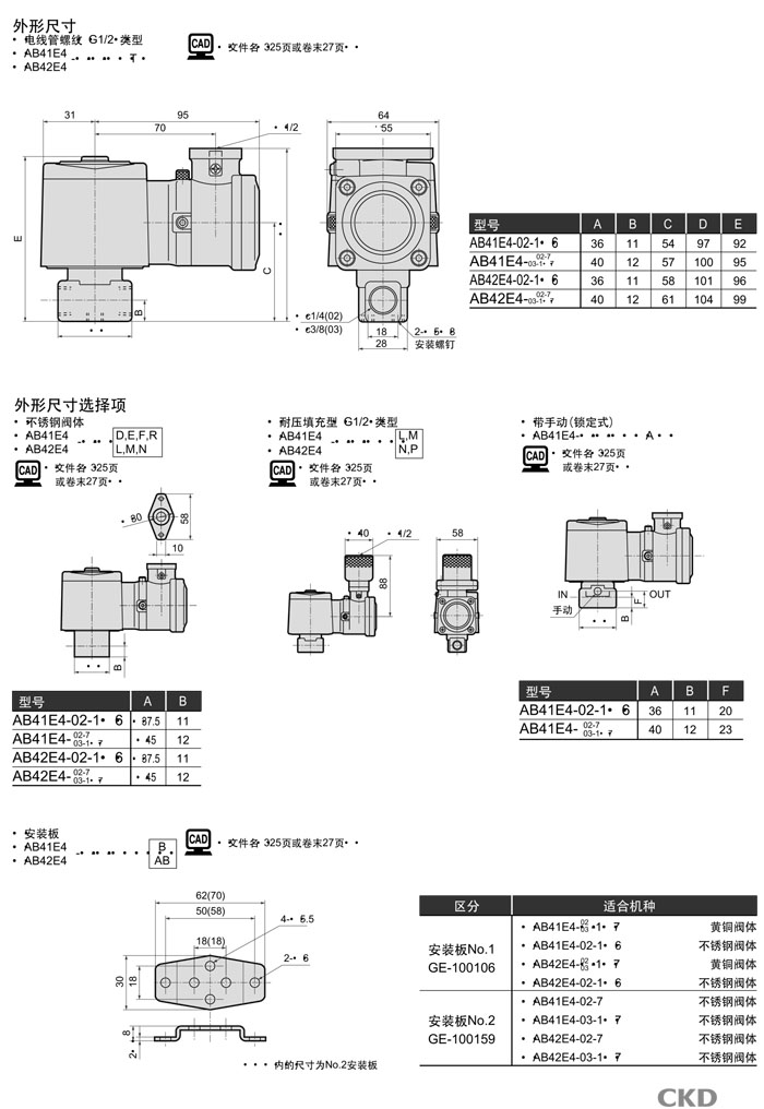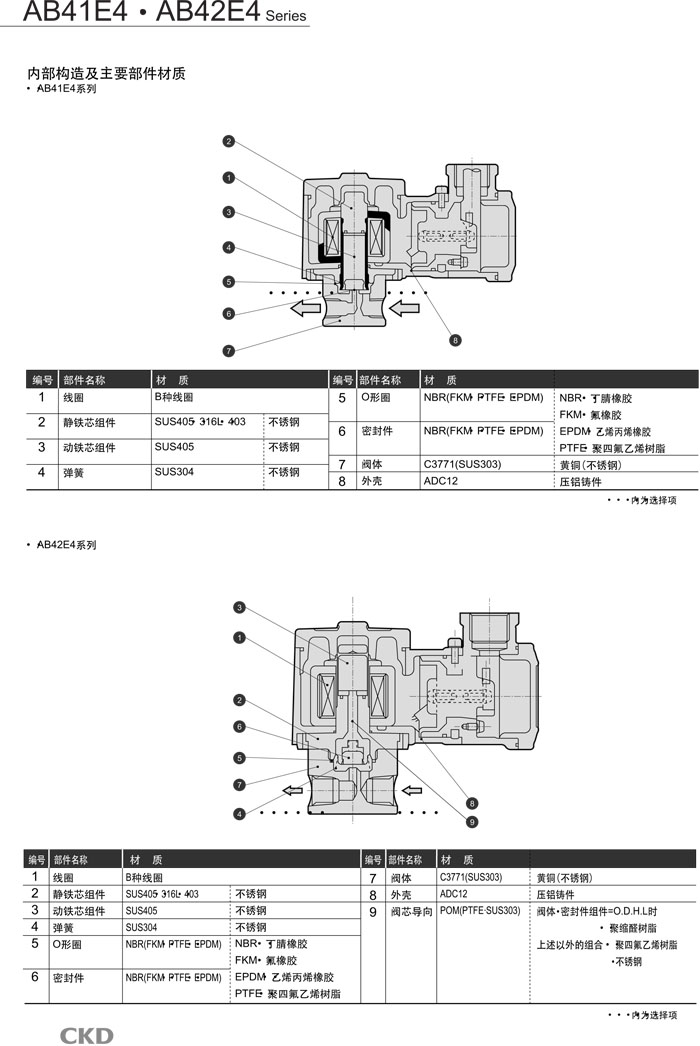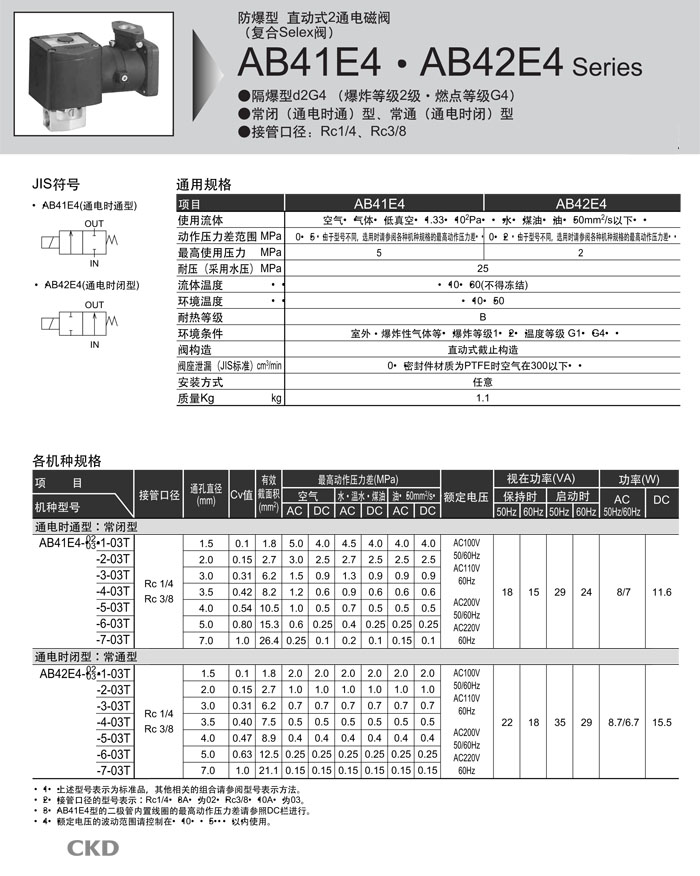 AB41E4-02-1,AB41E4-03-1,AB41E4-02-2,AB41E4-03-2,AB41E4-02-3,AB41E4-03-3,CKD直動式2通電磁閥