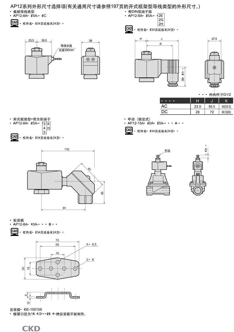 AP12-25A-N4A AP12-25A-N4K AP12-25A-N4H AP12-25A-N5A AP12-25A-N5K AP12-25A-N5H CKD先導式式2通電磁閥