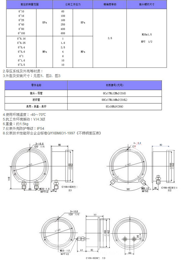 CYW-152B,CYW-153B,不銹鋼差壓表