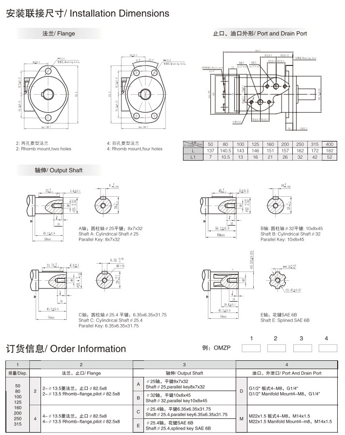 OMZP50,OMZP80,OMZP100,OMZP125,OMZP160,OMZP200,OMZP250,OMZP315,OMZP400,擺線馬達(dá)