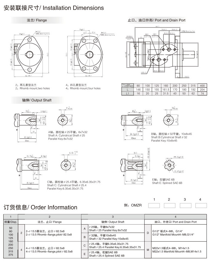 OMZR50,OMZR80,OMZR100,OMZR125,OMZR160,OMZR200,OMZR250,OMZR315,OMZR375,擺線馬達(dá)