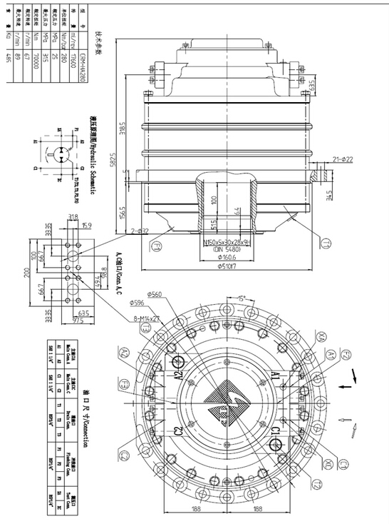 CRM系列液壓馬達是我司針對高端市場所開發(fā)的新產(chǎn)品。此產(chǎn)品能在各種惡劣工況下穩(wěn)定工作,能滿足大多數(shù)場合下對液壓馬達的高工作壓力、大扭矩輸出及低速穩(wěn)定性等要求。在結(jié)構(gòu)上,這款馬達采用端面配流,徑向柱塞內(nèi)曲線形式,利用馬達轉(zhuǎn)子中空優(yōu)勢,能方便的根據(jù)用戶要求配置制動器、測速器,及通過馬達中孔的特殊設(shè)備,大大減小用戶對工作主機結(jié)構(gòu)設(shè)計的難度。
