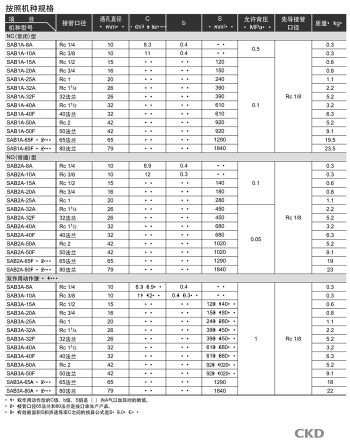 SAB1A-40F,SAB1A-50A,SAB1A-50F,SAB2A-8A,SAB2A-10A,SAB2A-15A,SAB2A-20A,SAB2A-25A,CKD氣控式2通閥