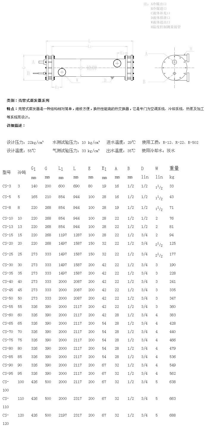 CS-3,CS-5,CS-8,CS-10,CS-13,CS-15,CS-20,CS-25,CS-30,CS-35,單回路蒸發(fā)器