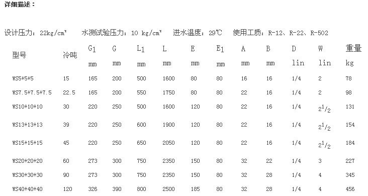 WS5+5+5,WS7.5+7.5+7.5,WS10+10+10,WS13+13+13,WS15+15+15,三回路冷凍機冷凝器