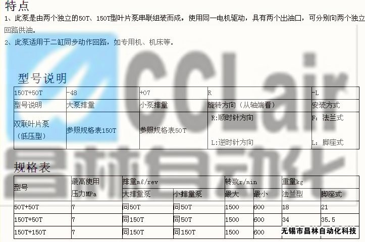 50T+50T,150T+50T,150T+150T,雙聯(lián)低壓定量葉片泵