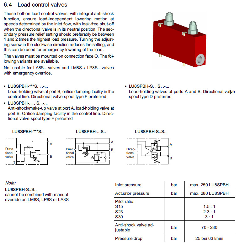 LU8SPBH-S15S15-0M18,LU8SPBH-S23S15-0M18,LU8SPBH-S30S15-0M18,Bucher負(fù)荷控制閥