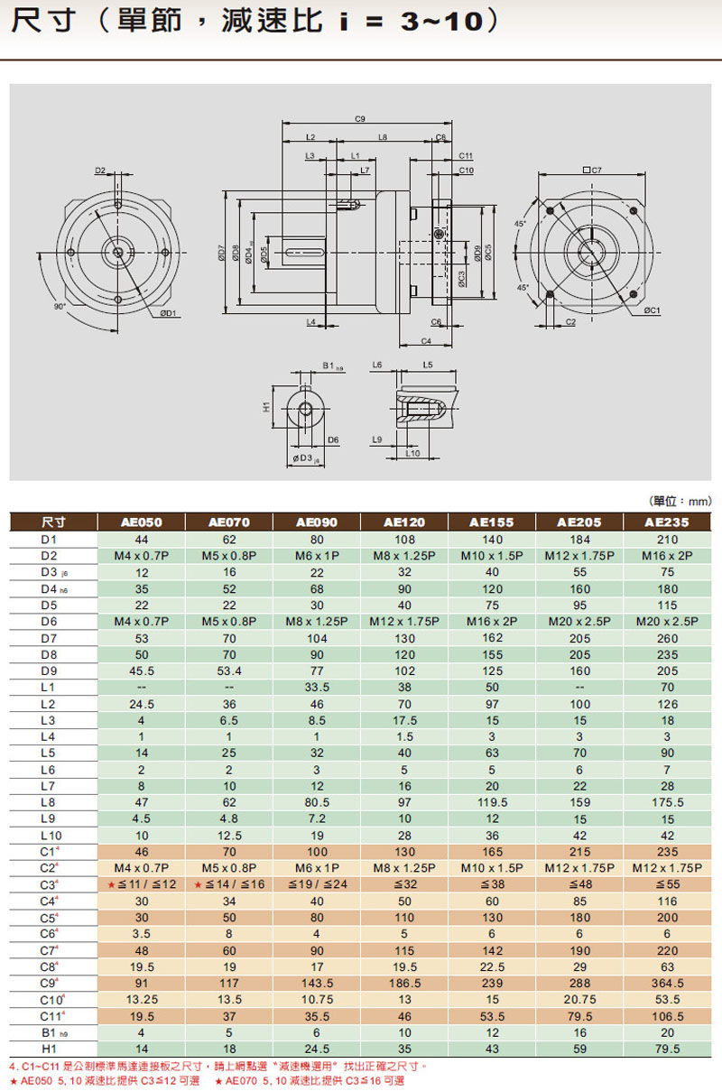 AE050,AE070,AE090,AE120,AE155,AE205,AE235,伺服專用減速機(jī)