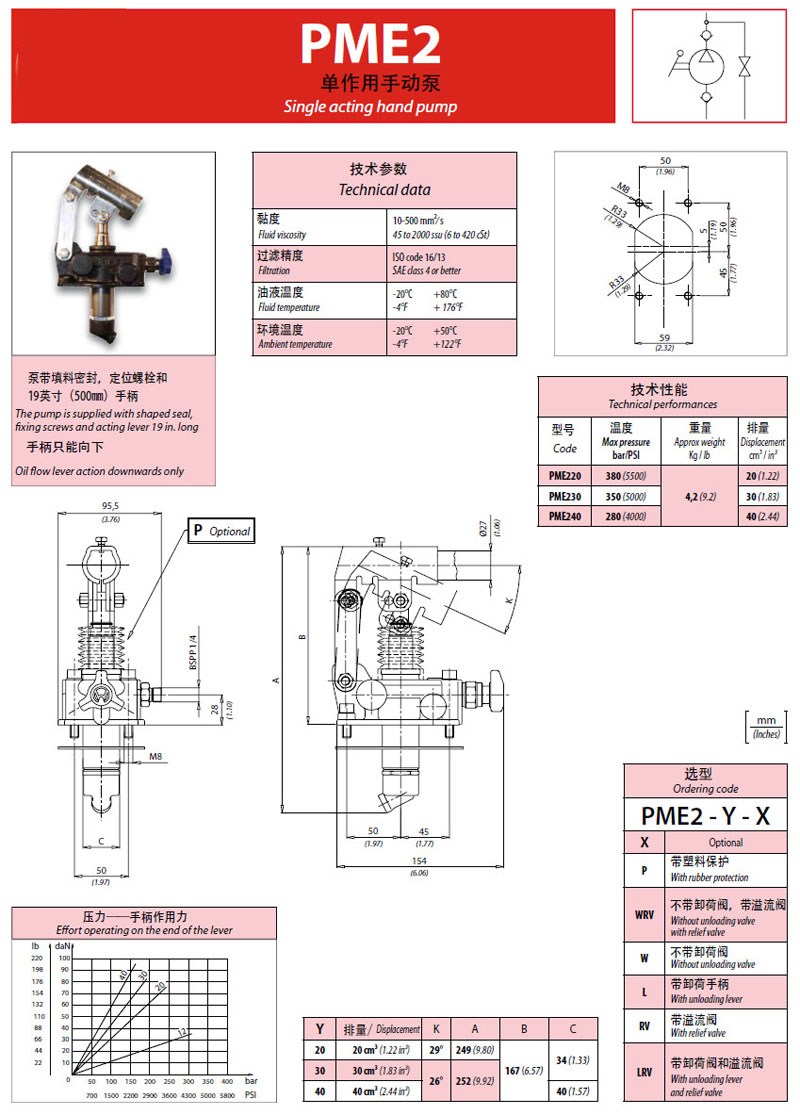 PME220-P,PME220-WRV,PME230-W,PME230-L,PME240-RV,PME240-LRV,單作用手動泵