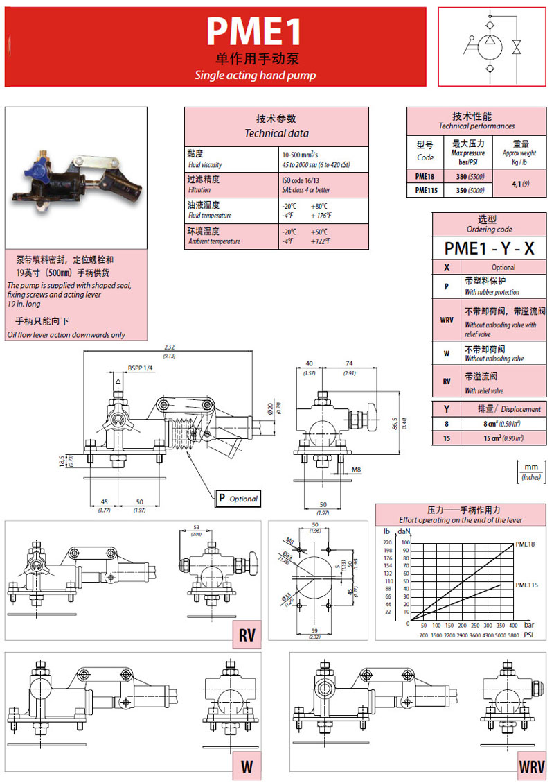 PME18-P,PME18-WRV,PME18-W,PME18-RV,PME115-P,PME115-WRV,單作用手動泵