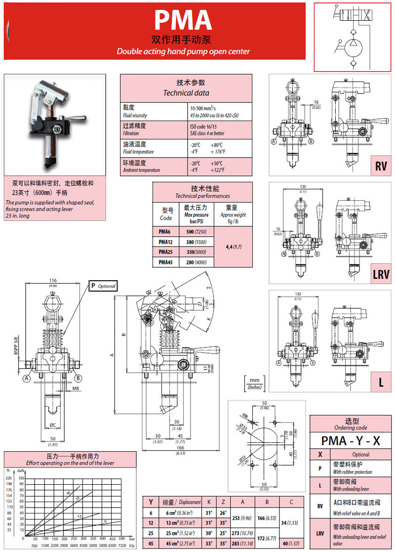 PMA6-P,PMA12-P,PMA5-P,PMA45-P,PMA6-L,PMA6-L,PMA6-LRV,雙作用手動泵