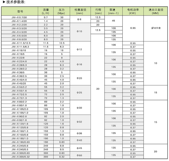 JM-X-0.7/30,JM-X-1.4/20,JM-X-2.2/20,JM-X-3.5/20,JM-X-4.5/20,JM-X-6.0/20,液壓隔膜式計量泵