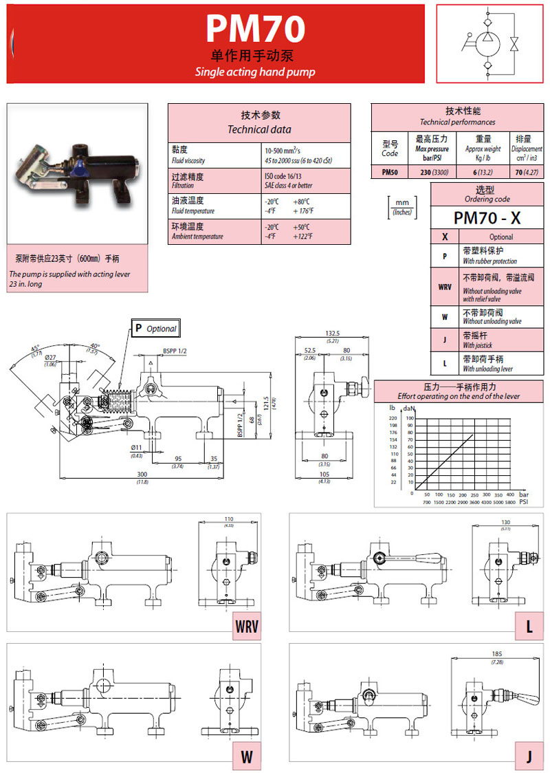 PM70-P,PM70-WRV,PM70-W,PM70-J,PM70-L,單作用手動(dòng)泵