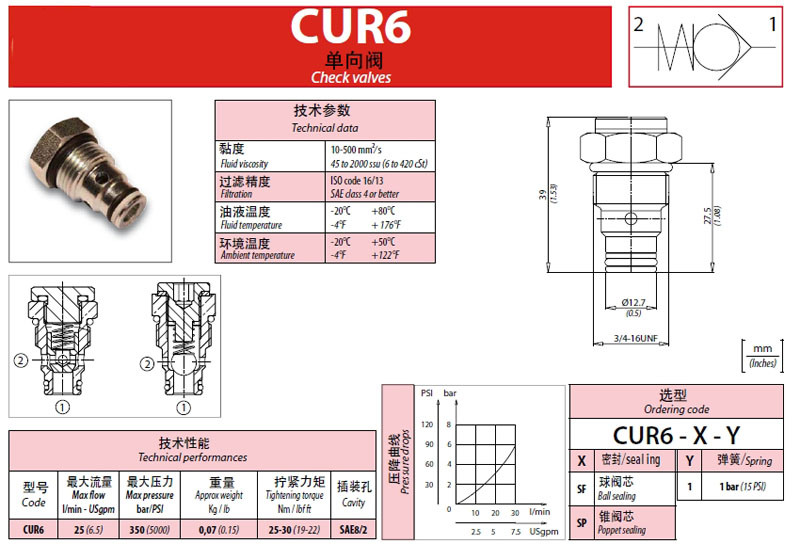 CUR6-SF-1,CUR6-SP-1,單向閥