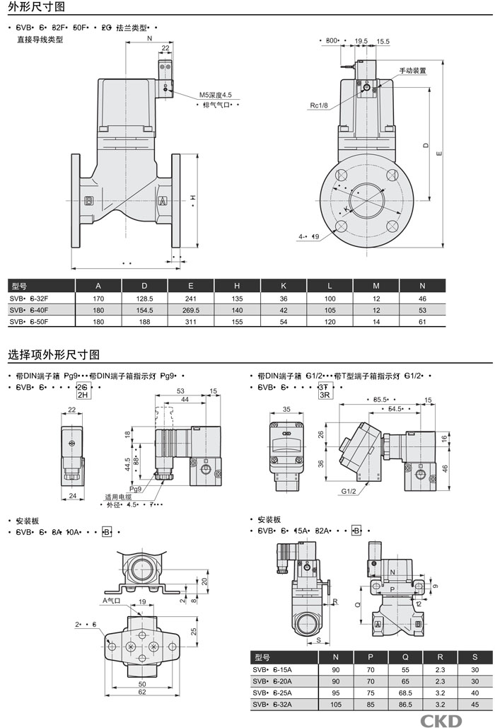 SVB1S-40A,SVB1S-40F,SVB1S-50A,SVB1S-50F,SVB2S-8A,SVB2S-10A,SVB2S-15A,SVB2S-20A,CKD氣控式2通閥