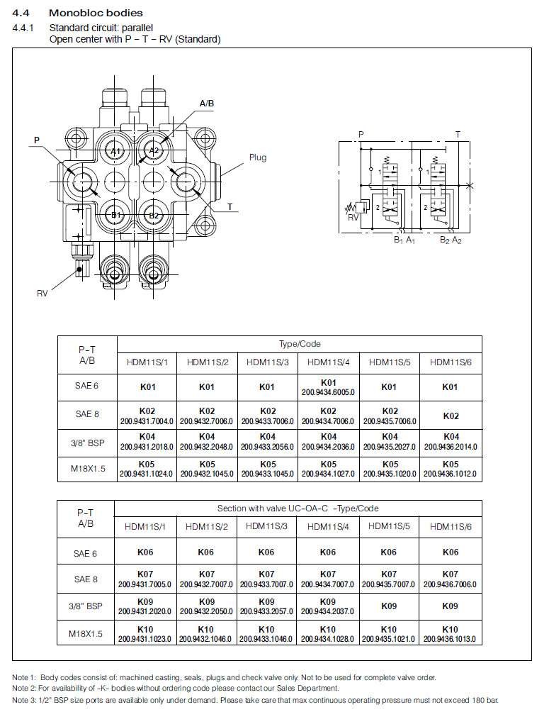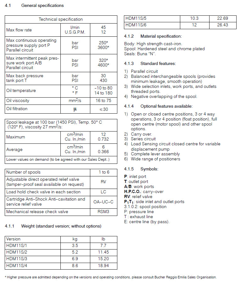 HDM11S/1,HDM11S/2,HDM11S/3,HDM11S/4,HDM11S/5,HDM11S/6,Bucher整體式方向控制閥