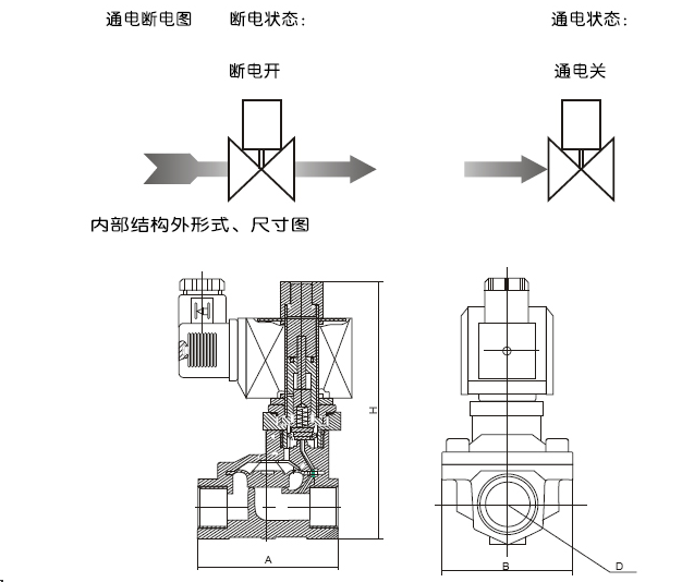 二位二通常型電磁閥,斷電打開,通電關(guān)閉閥體材質(zhì)為銅,最大耐壓:12kgf/cm2環(huán)境溫度:0℃~65℃產(chǎn)品系列化生產(chǎn),體積小,流量大,適用范圍廣按閥上所表流向箭頭,可任意安裝;為增強使用壽命,最好線圈向上,水平安裝