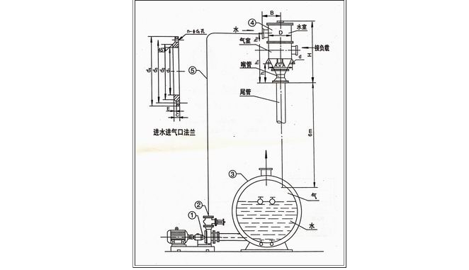 1、 安裝前應(yīng)檢查噴泵內(nèi)腔有無導(dǎo)物,安裝時可根據(jù)進(jìn)水、進(jìn)氣管現(xiàn)場情況,松開氣室與水室的聯(lián)結(jié)螺栓調(diào)整位置,重新緊固。