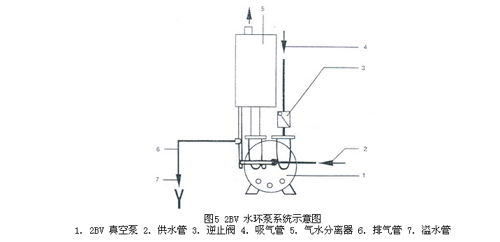 當(dāng)2BV水環(huán)式真空泵排出的氣體不再利用時,在2BV水環(huán)式真空泵排氣口上接有氣水分離器,廢氣和所帶的部分水排入氣水分離器后,氣水分離,氣體由排氣管排出,留下的水經(jīng)回水管供至泵內(nèi)繼續(xù)使用。隨著工作時間的延長,工作水溫度會不斷地升高,這時需從供水管供給冷水,以降低工作水的溫度,保證泵能達(dá)到所要求的技術(shù)要求和性能指標(biāo)。