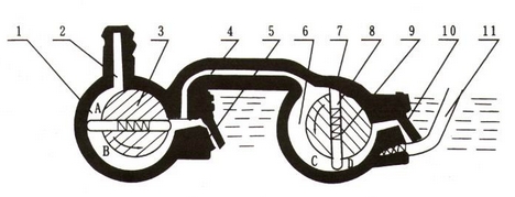 如被抽除的氣體中含有較高的蒸汽氣體時,在氣體受到壓縮而其蒸汽的分壓強超過此蒸汽在泵內(nèi)溫度下的飽和壓強時,此時蒸氣被壓縮成為液體,旋片式真空泵無法排出,而混在真空油內(nèi),使泵的性能大大降低。如果摻入適量的空氣,使蒸汽在受到壓縮時,其分壓強也低于泵溫的飽和壓強,則蒸汽在變成液體前就能被排出泵外去,故本系列2X-4以上的泵都裝有能放入一定量氣體的摻氣閥11見圖1