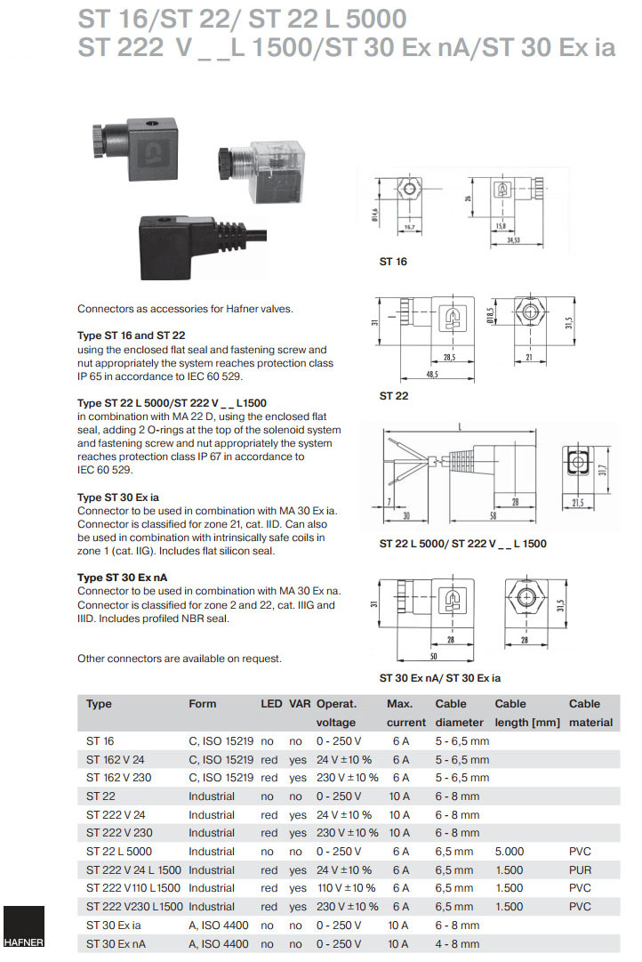 ST16,ST162V24,ST162V230,ST22,ST222V24,ST222V230,ST22L5000,ST222V24L1500,ST222V110L1500,Hafner電磁線圈