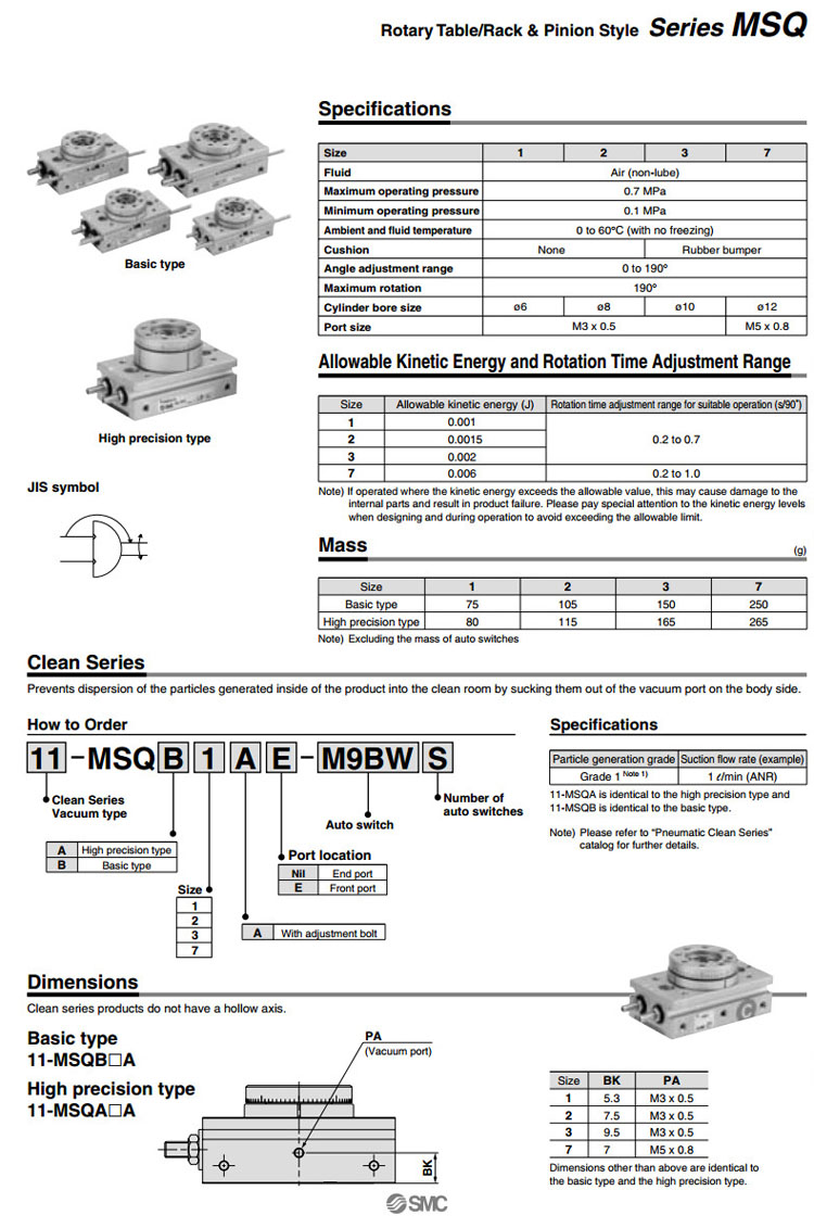 MSQA1A,MSQA2A,MSQA3A,MSQA7A,MSQB1A,MSQB2A,MSQB3A,MSQB7A,SMC擺臺(tái)氣缸