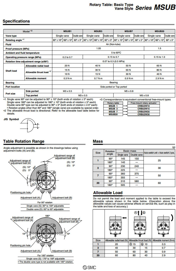 MSUB1-90,MSUB1-180,MSUB3-90,MSUB3-180,MSUB7-90,MSUB7-180,MSUB20-90,MSUB20-180,SMC擺臺氣缸