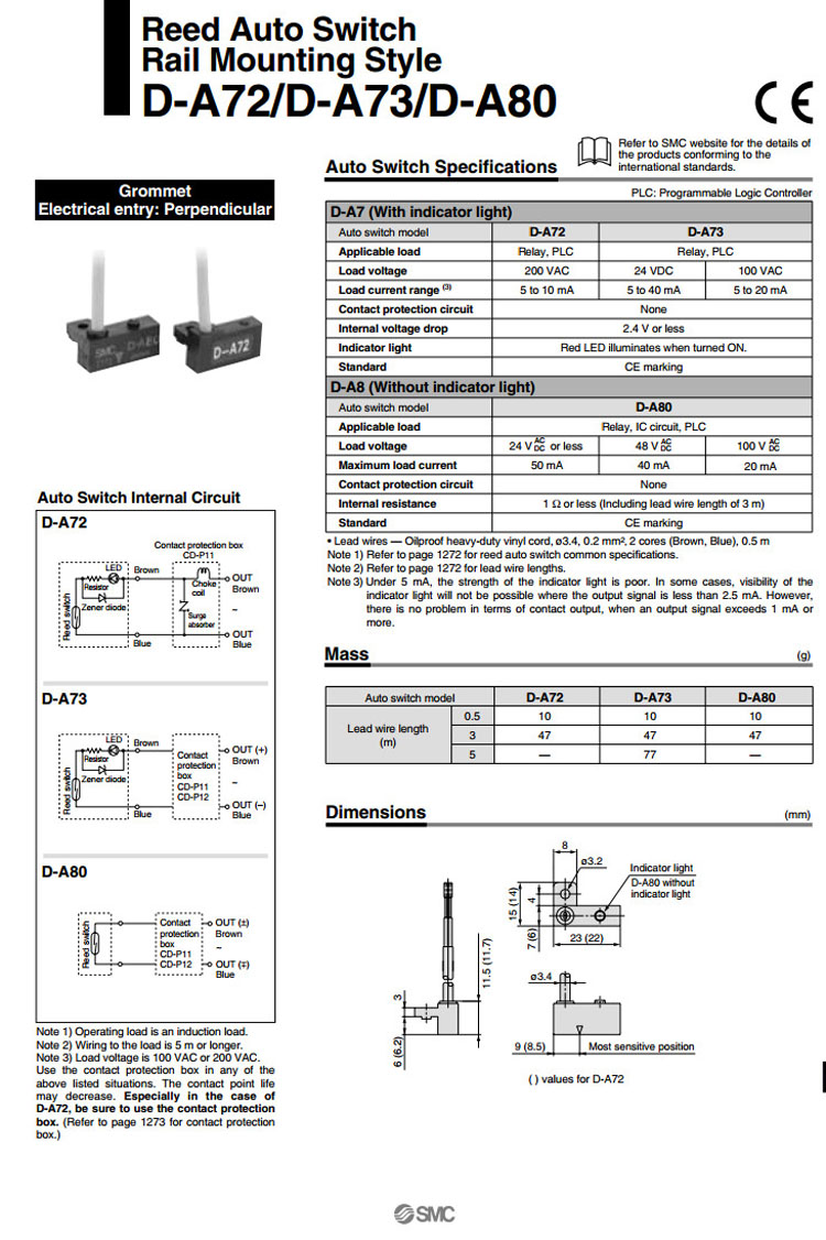 D-A72,D-A73,D-A80,SMC自動(dòng)開關(guān)