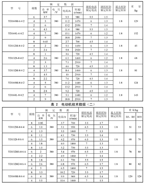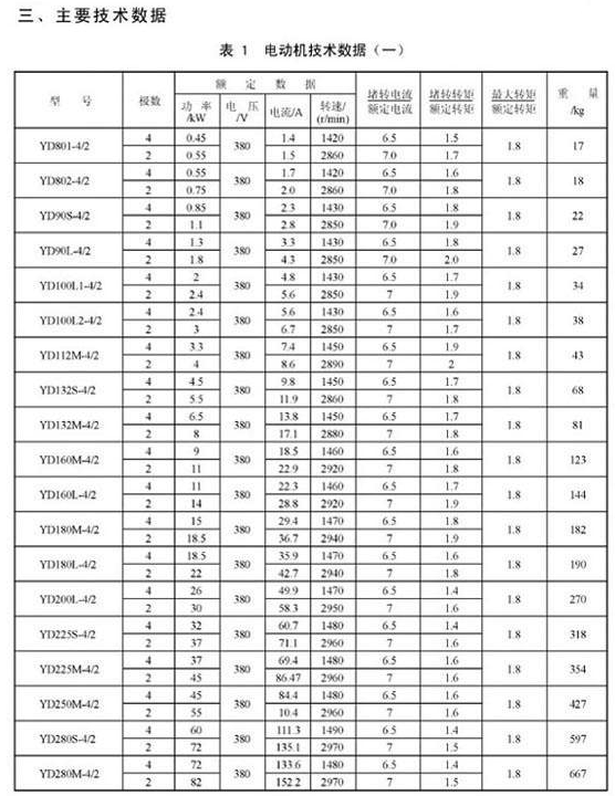 YD132S-4/2,YD132M-4/2,YD160M-4/2,YD160L-4/2,YD180M-4/2,YD180L-4/2,YD200L-4/2,