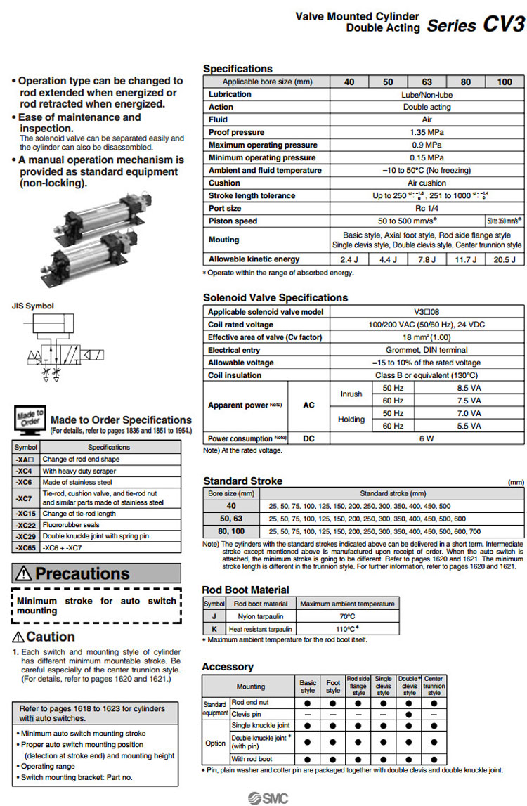 CV3B50-350,CV3B50-400,CV3B50-450,CV3B50-500,CV3B50-600,CV3B63-25,CV3B63-50,CV3B63-75,CV3B63-100,CV3B63-125,
