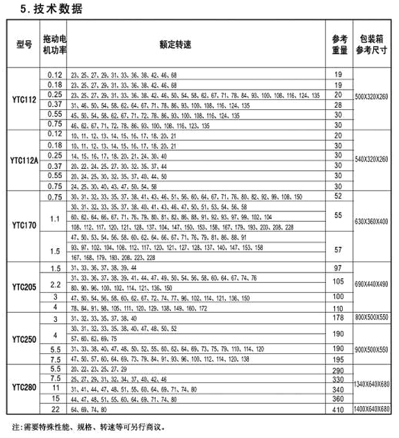 YTC112,YTC112A,YTC170,YTC205,YTC250,YTC280,齒輪減速電動(dòng)機(jī)
